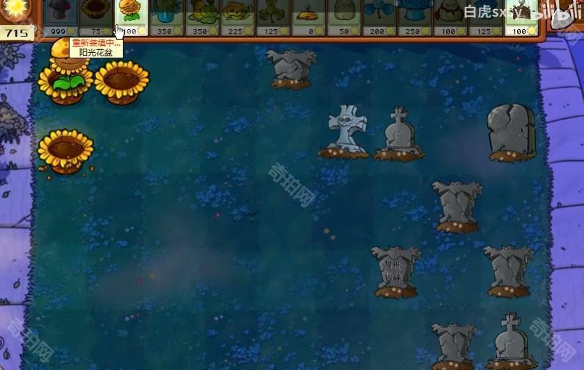 1、这一关又回归了以前的黑暗模式,我们在后排放置阳光花盆然后种上向日葵收集能量。