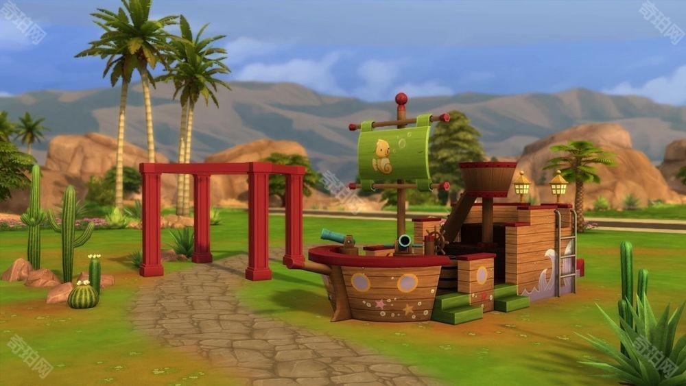 模拟人生玩家还将获得全新的「建造/购买」物品,包括时髦的门窗以及全新的厨房橱柜木纹装饰,而孩子们将有艘全新的海盗船。