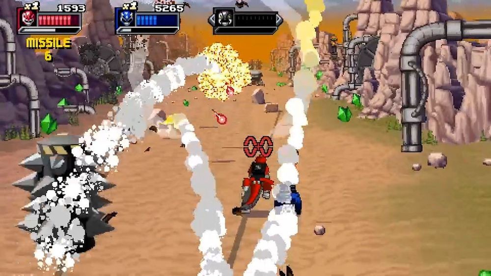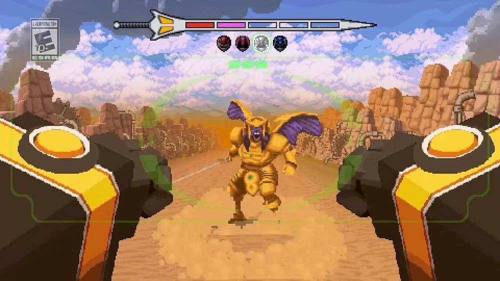 游戏采用经典的 16 位元风格 2D 点阵绘图呈现,结合多样化玩法,包括横向捲轴动作过关、以扩大缩小来模拟 3D 空间感的 2.5D 飞车追逐战,还有驾驶机器恐龙合体金刚战神的 2.5D 第一人称巨大机器人战斗。