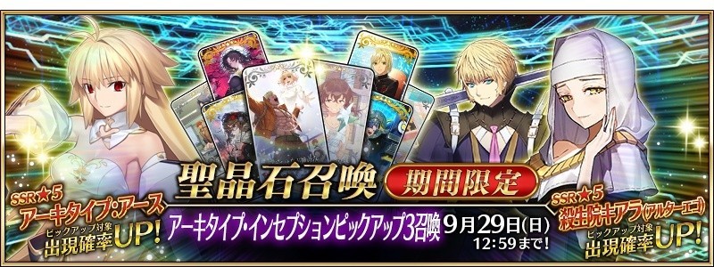 FGO PROJECT(Notes、Aniplex,Lasengle)宣布,手游《Fate/Grand Order》日服于日本时间 9 月 20 日 18:00 起开启限时活动「奏章 III 新灵长后继战 Archetype Inception(后篇)」。此外,为了纪念活动开幕,也将举办「Archetype Inception BB PICK UP 3」限时召唤活动。