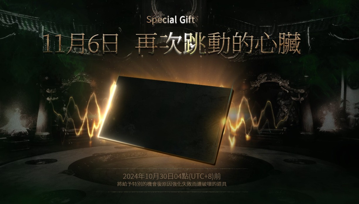 此外,NC 为纪念改版,特别向所有服务器玩家提供 TJ 礼券。从 11 月 6 日开始,可以使用相关礼券复原因强化失败而破损的道具。