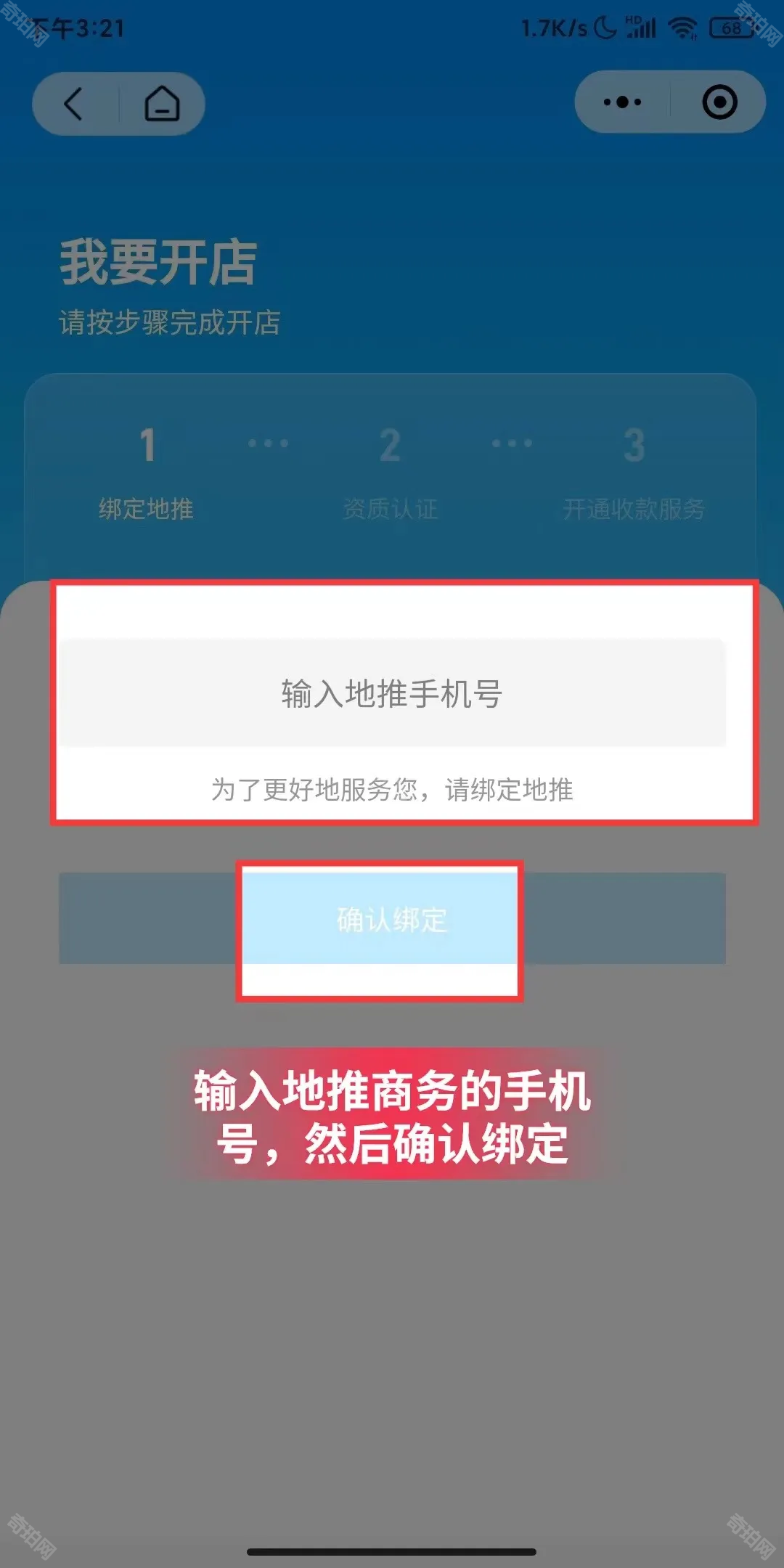 3、填写地推手机号后按下确认绑定