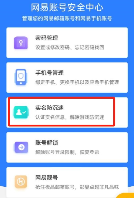 5、在安全中心页面点击“实名防沉迷”。