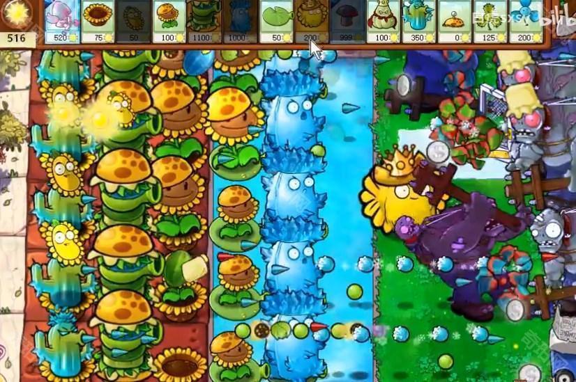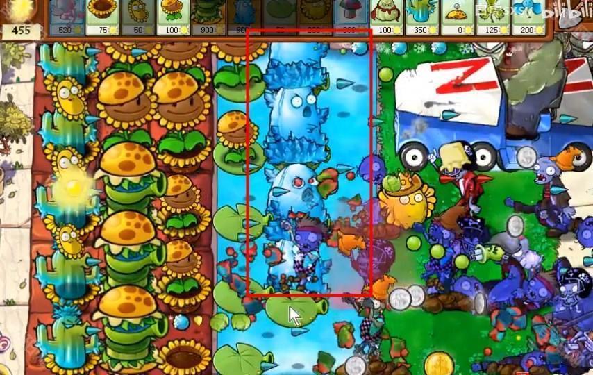 2、打不过的道路上面可以在后面放一些寒冰仙人掌,这个攻击距离远。