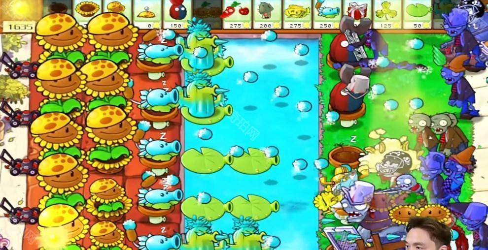 3、后面僵尸越来越多,在后排放一些寒冰香蒲来攻击。