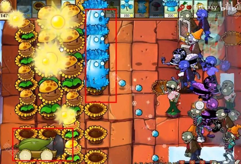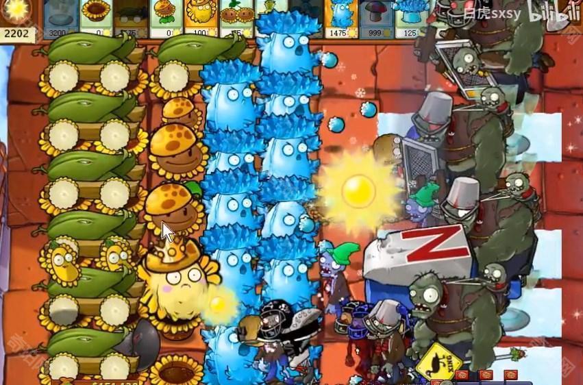3、前方可以放雪花寒冰菇,这个植物可以满屏攻击,攻击范围大。
