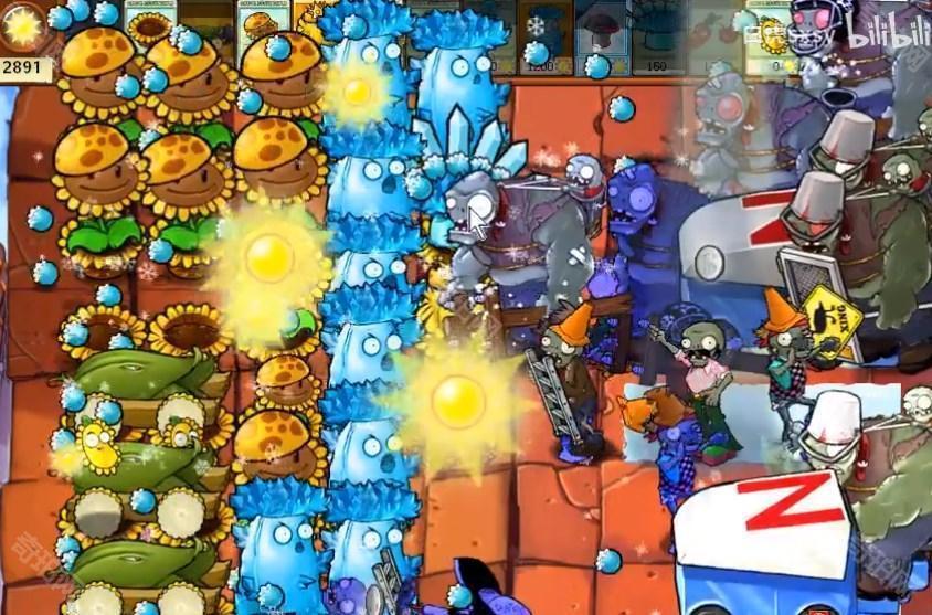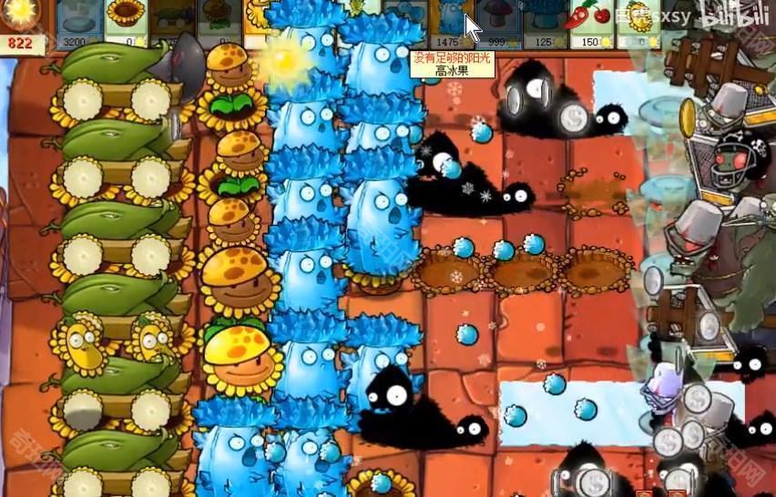 2、打不过的在前方放高冰果阻拦,在后方放豌豆加农炮攻击僵尸。