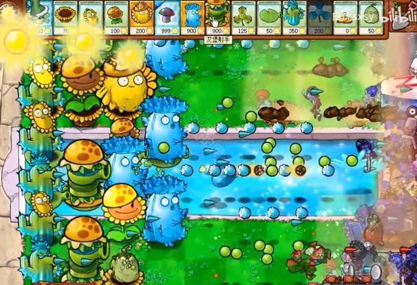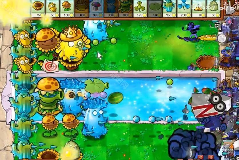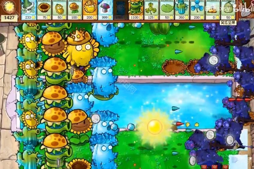 1、先种花盆向日葵收集能量,在后排种植寒冰仙人掌来攻击僵尸,然后其他道路观察有,有僵尸种植窝瓜坚果。