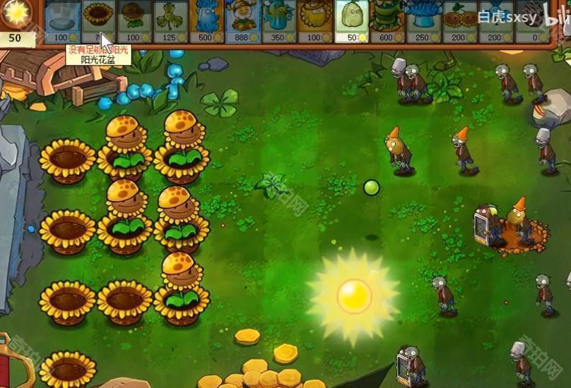 1、在后排放阳光花盆,阳光花盆也是有攻击力的,在花盆里面种植阳光向日葵,在前期快速收割一波阳光。