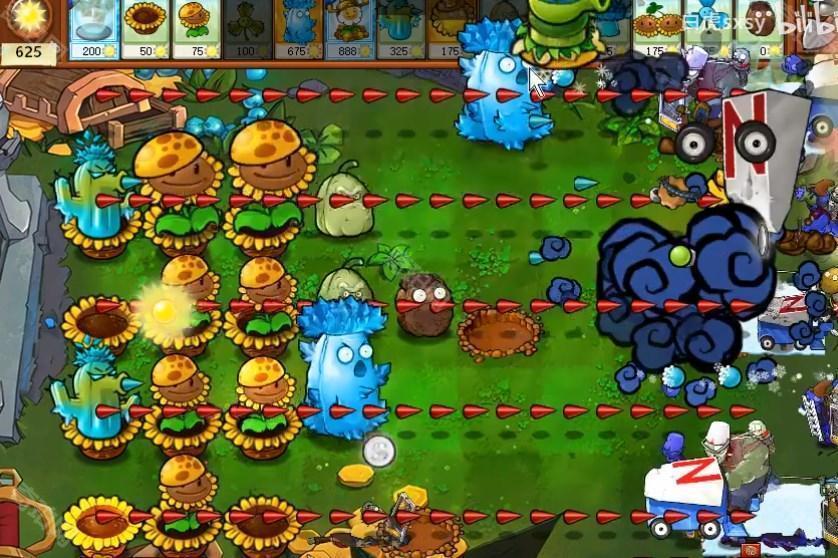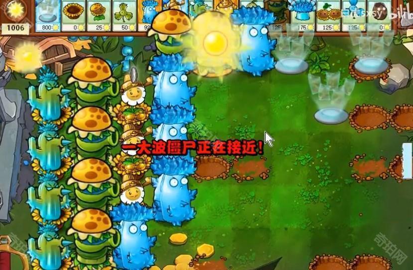 2、在后面放寒冰仙人掌,仙人掌的攻击距离很远,放在最后一排也没关系。