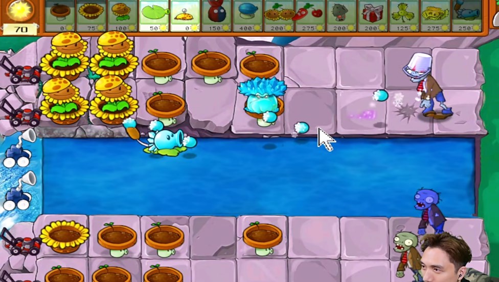 1、开局在后排建立一些向日葵,前面建造寒冰窝瓜,这个伤害还是很高的,注意前方可以埋伏地雷。