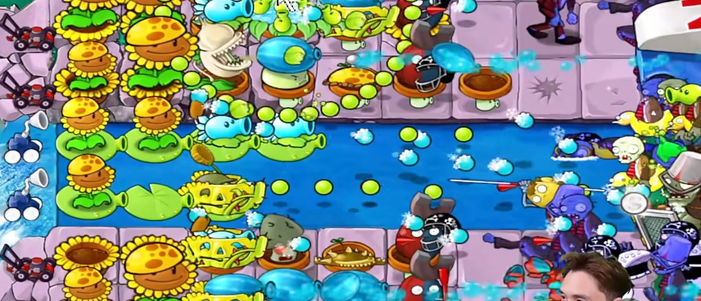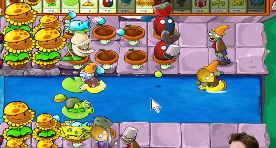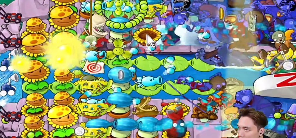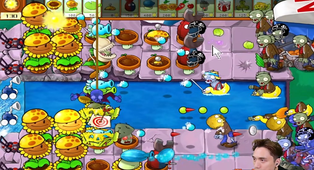 2、水里及时布置豌豆睡莲,睡莲可以攻击,在睡莲上面还可以安排机关枪豌豆。