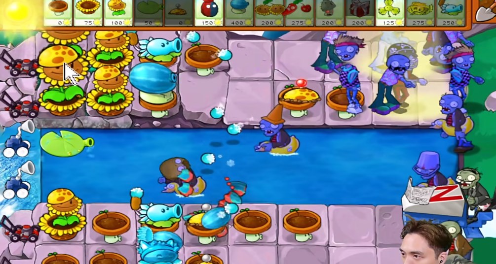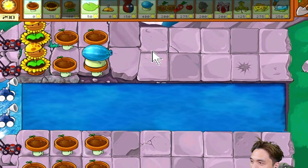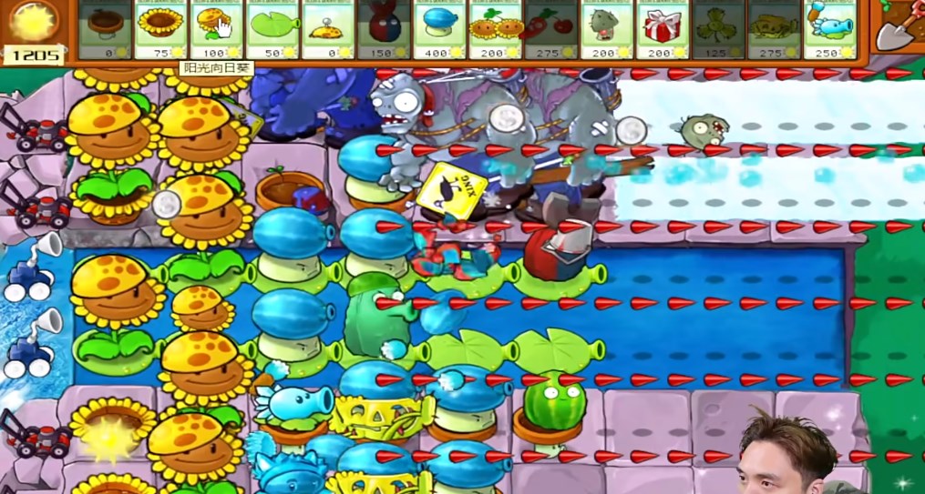 4、在水面睡莲上安排窝瓜,注意突然出现的僵尸。