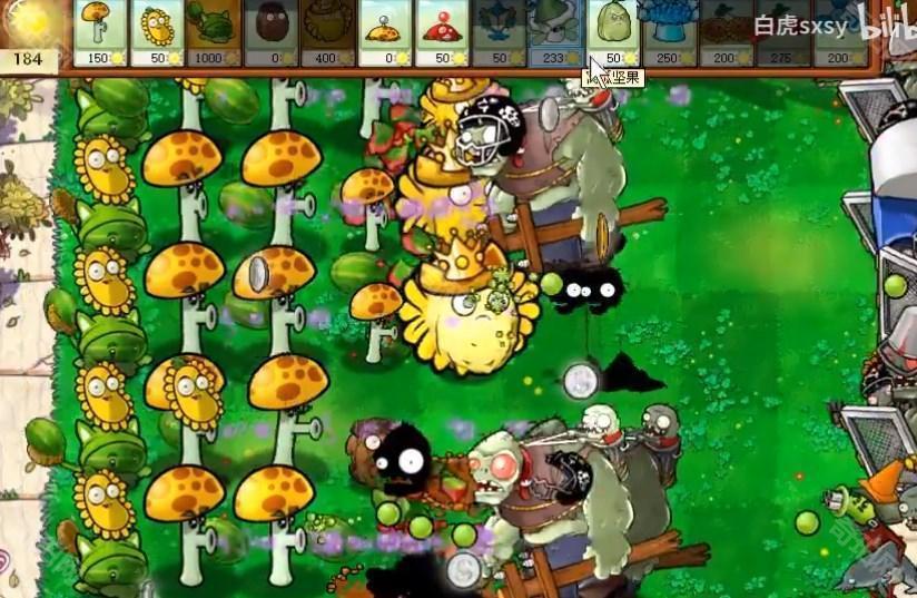 1、在倒数第二排放一些阳光胆小菇,这个花费阳光不多,伤害应对前期的僵尸也是绰绰有余了。