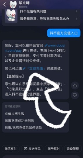 5、然后再成功进入客服闲聊界面,键入【抖币官方充值入口】,随后充值即可。