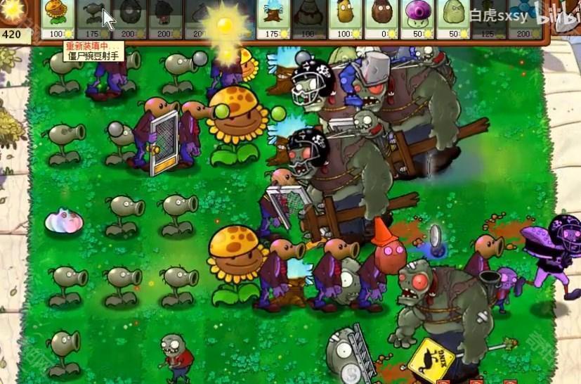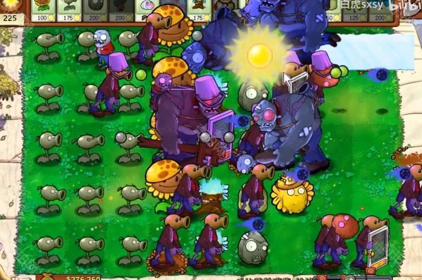 1、观察僵尸率先出现的道路,在僵尸先出现的道路种植僵尸豌豆射手,其他继续种植阳光向日葵。