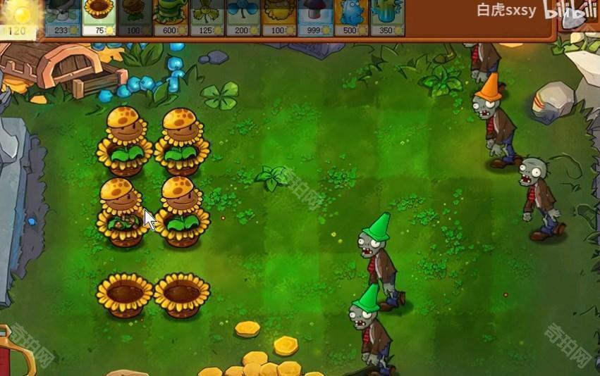 1、在后排放阳光花盆和阳光向日葵来收集能量,花盆后期可以发射葵花籽,攻击力也不错。