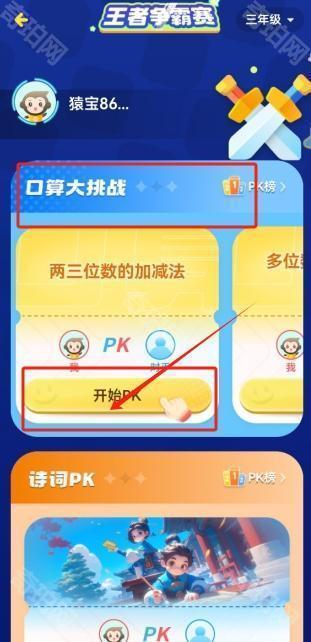 4、然后选择一种你想要进行的口算比赛点击“开始pk”。