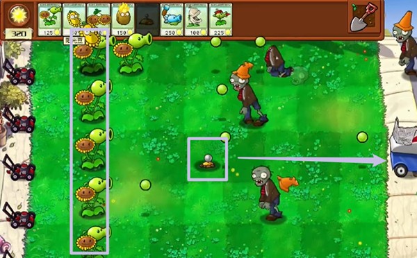 3、每条道路有太阳的话都可以建设一个地雷放置雪橇僵尸的出现,这个僵尸移动速度很快。