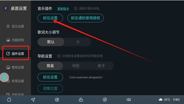 3、点击插件设置然后“前往设置”就可以进行设置音乐插件。