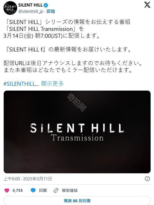 KONAMI 3月11日宣布,介绍《寂静岭》系列资讯的缐上节目「SILENT HILL Transmission」将于3 月 14 日(五)上午 6:00 播出,将带来系列新作《寂静岭 f(Silent Hill f)》的最新消息。