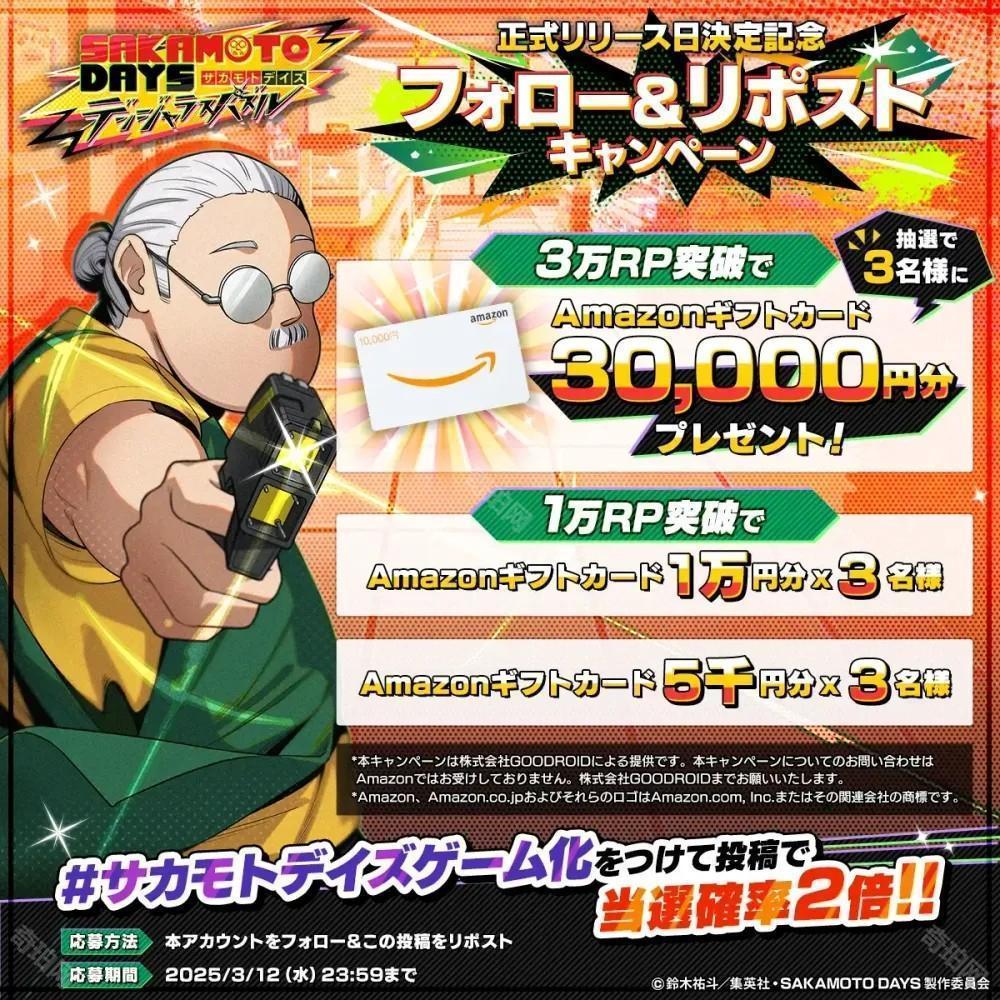 官方表示,为纪念游戏正式上线日确定,官方 X 现正举办转发抽奖活动,将根据转发数量赠送 Amazon 礼品卡。此外,目前事前登录已突破 10 万人,将赠送游戏内道具感谢玩家们的支持。