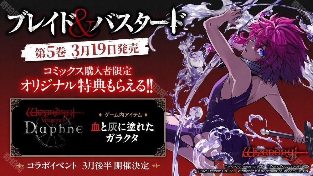Drecom 2月25日宣布,《巫术》系列最新作的 3D 迷宫 RPG《巫术 Variants Daphne(暂译,Wizardry Variants Daphne)》,将与跟《巫术》拥有相同世界观的黑暗奇幻作品《BLADE BASTARD》联动,联动活动预计于 2025 年 3 月下半月举办。